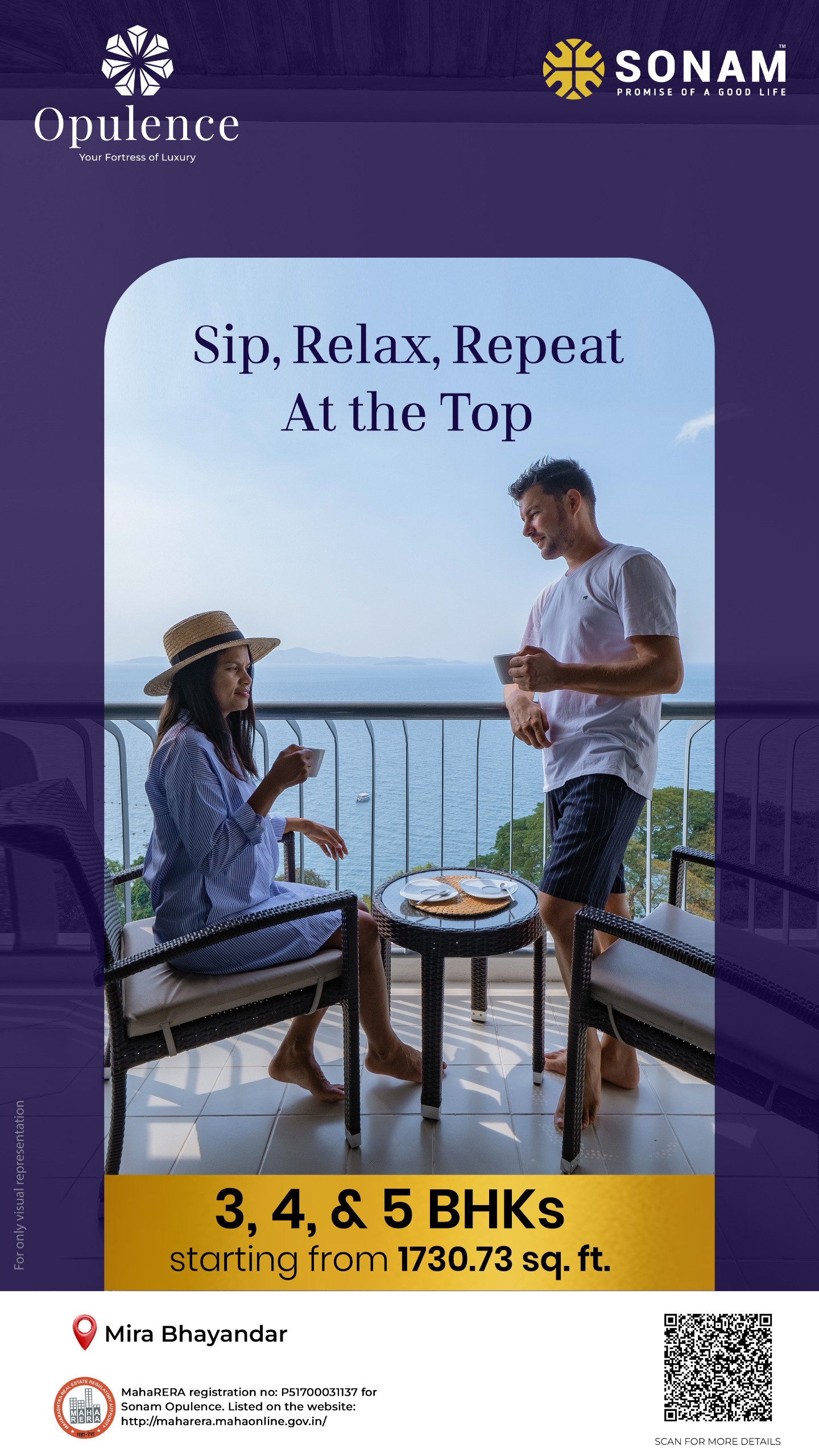 Opulence Mira Road East Prices & its details can be found in the price section & Sonam Opulence brochure can be downloaded from the link mentioned below. Project has been praised by the home buyers & Sonam Group Mira Road East review is 4 out of 5 from over all the clients who have visited the site.Sonam Opulence QR Codes